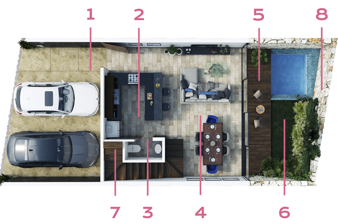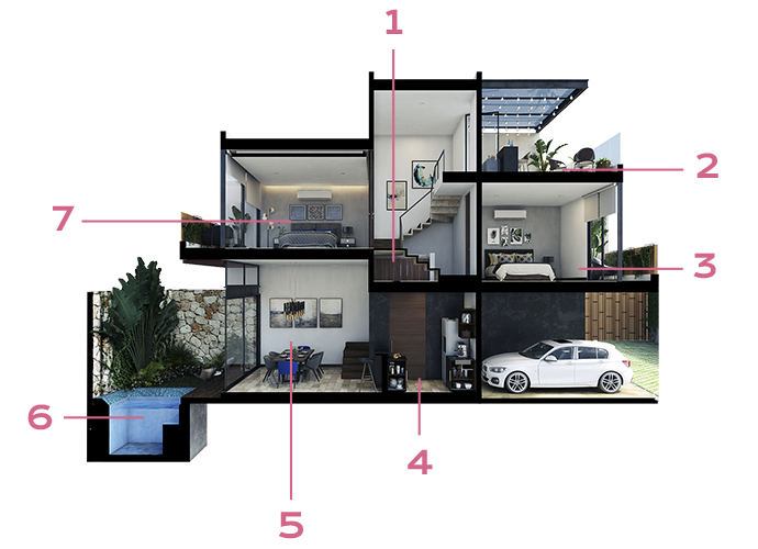 Espacios pensados para aprovechar al máximo de tu nuevo hogar, además de atractivas opciones de personalización disponibles para cualquiera de las 7 Concept Townhouses.