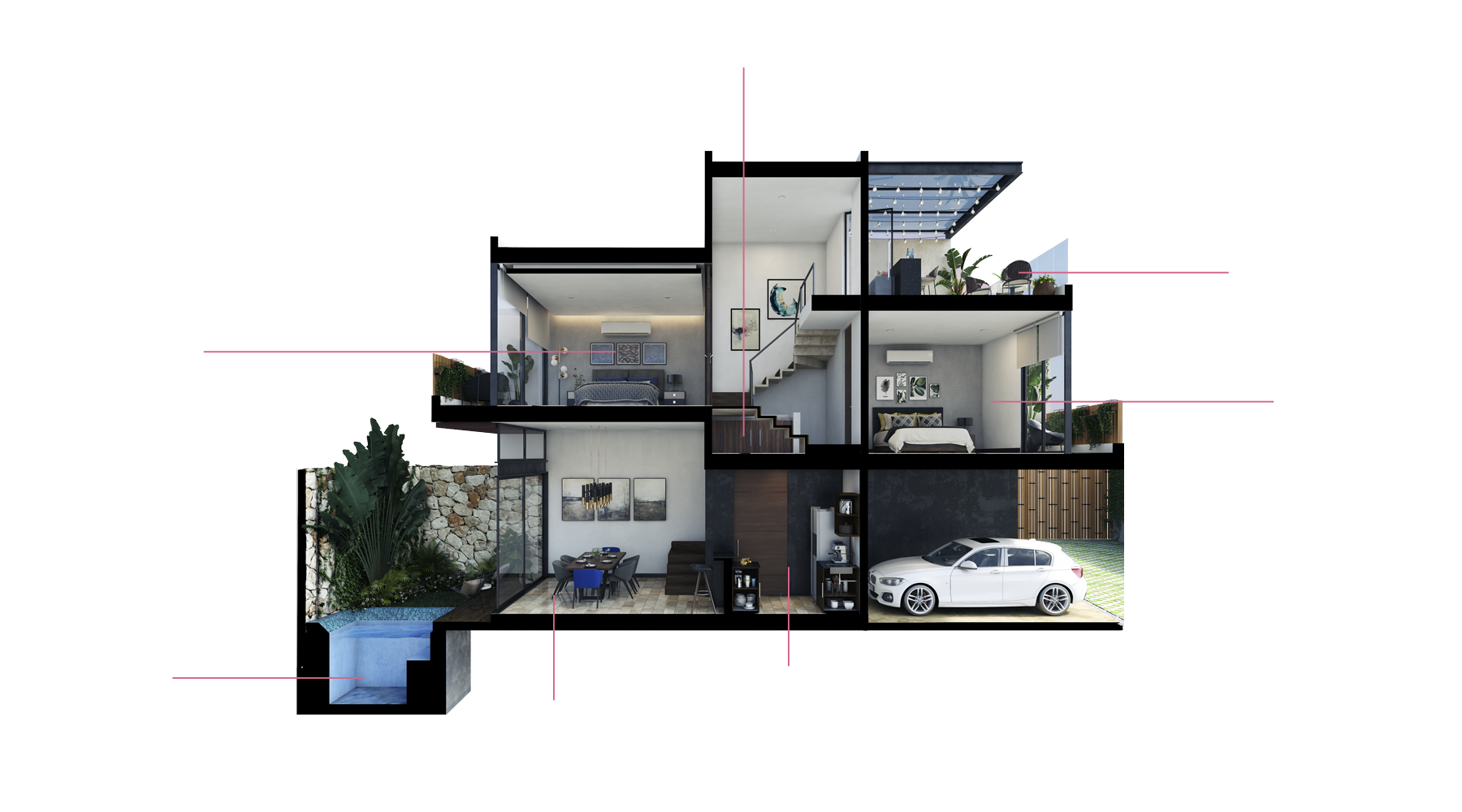 Este concepto vanguardista integra modernidad y comodidad presentando una propuesta única: una vivienda exclusiva y funcional ubicada en Montebello, la mejor zona de la ciudad al norte de Mérida, Yucatán.